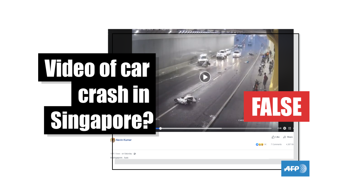 No, this is not a video of a car crash in Singapore – the accident actually happened in Thailand