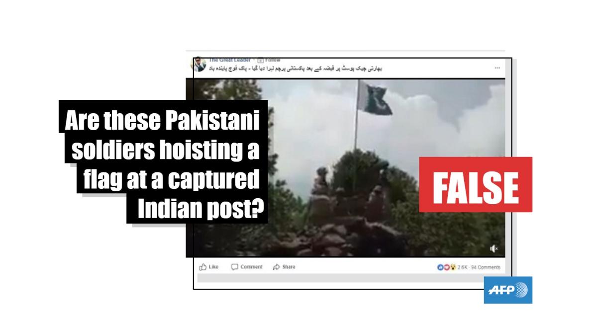 This Facebook video, which has been viewed more than 84,000 times since it was uploaded February 27, 2019, has a caption saying: "Pakistani flag hoisted after capturing Indian checkpost. Live forever Pakistan army".