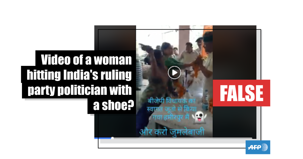 No, this is not a video of a woman hitting an Indian ruling party lawmaker with a shoe