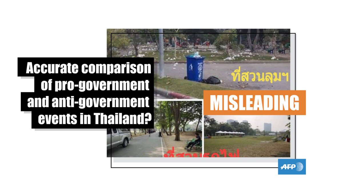 No, one of these photos shows a park in south Thailand -- it does not show a littered park after a pro-government event in Bangkok