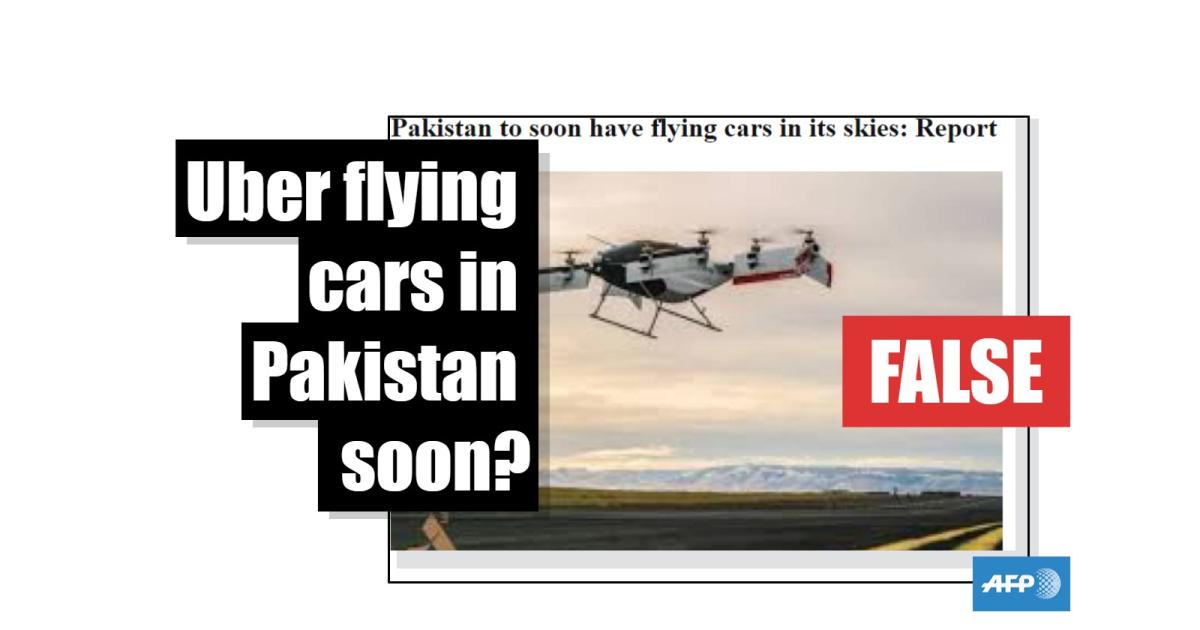 An online report claimed Pakistan will soon have flying cars in its skies as Uber is considering the country as a potential market for the new technology. Uber told AFP it did not plan to test or launch its flying car service in Pakistan soon. Pakistan’s Civil Aviation Authority said it had not received any requests to launch a flying car service in the country.