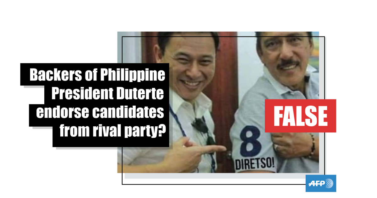 No, this photo does not show backers of Philippine President Duterte endorsing candidates from a rival party