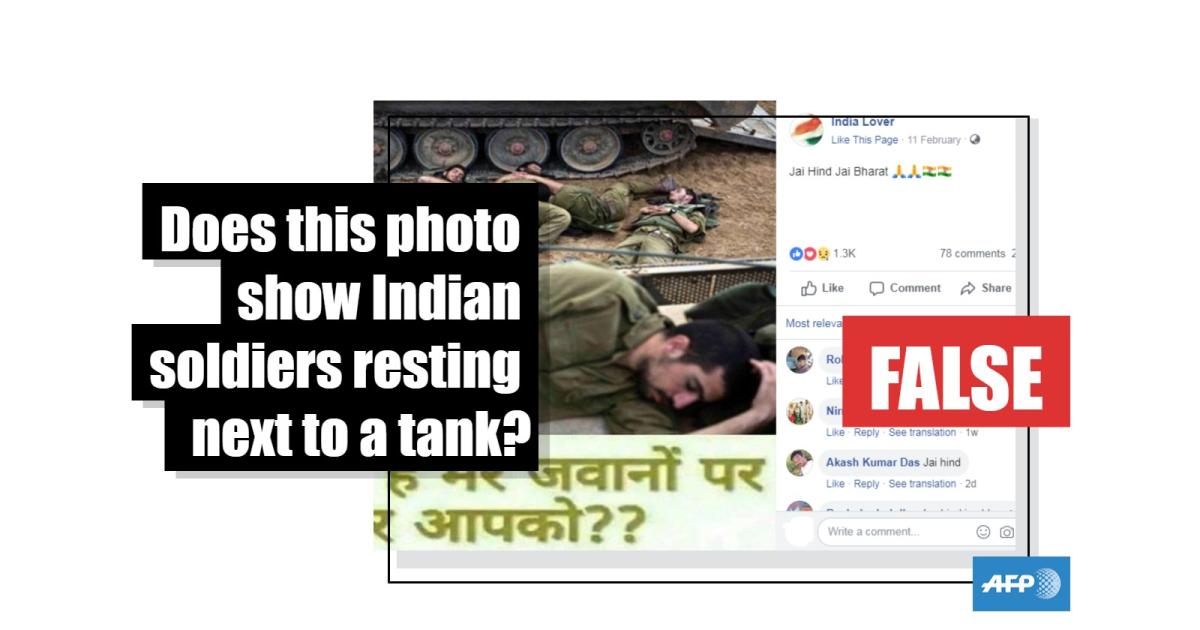 No, this photo does not show Indian soldiers resting next to a tank