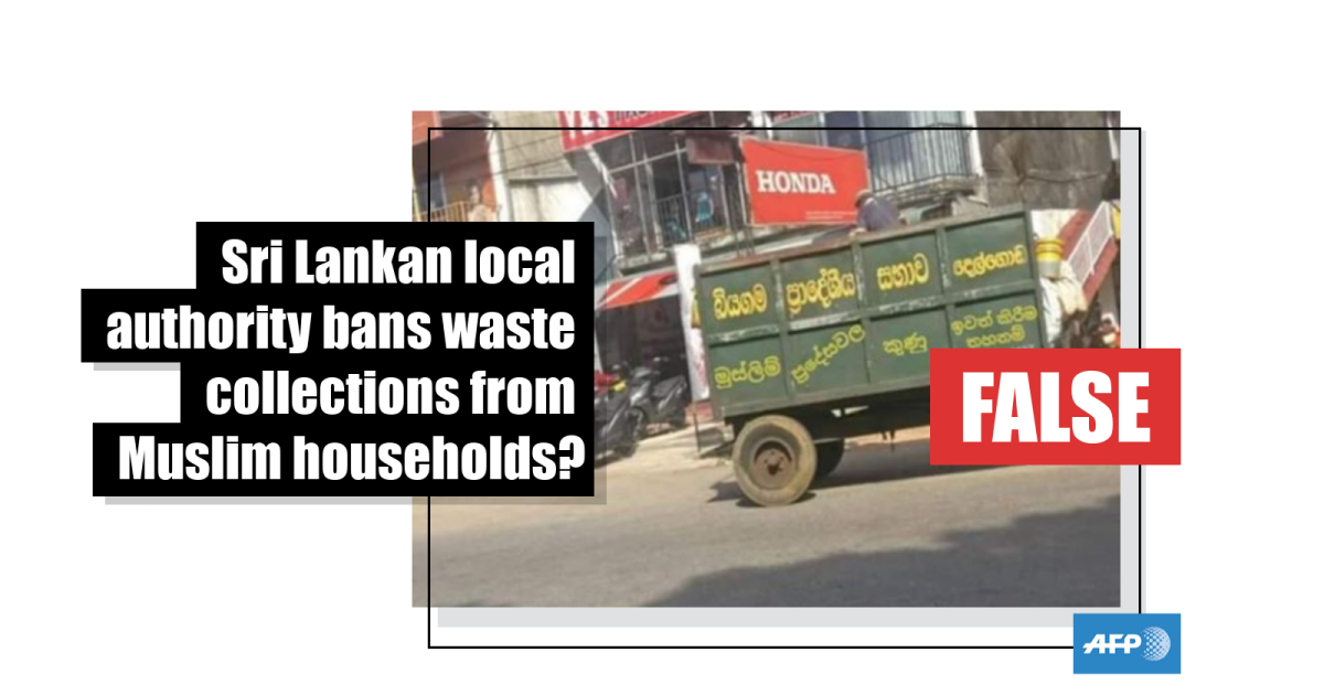 The post claims the local government in Biyagama, an electorate in Gampaha District, in Sri Lanka's Western Province, has banned waste collections from Muslim households.