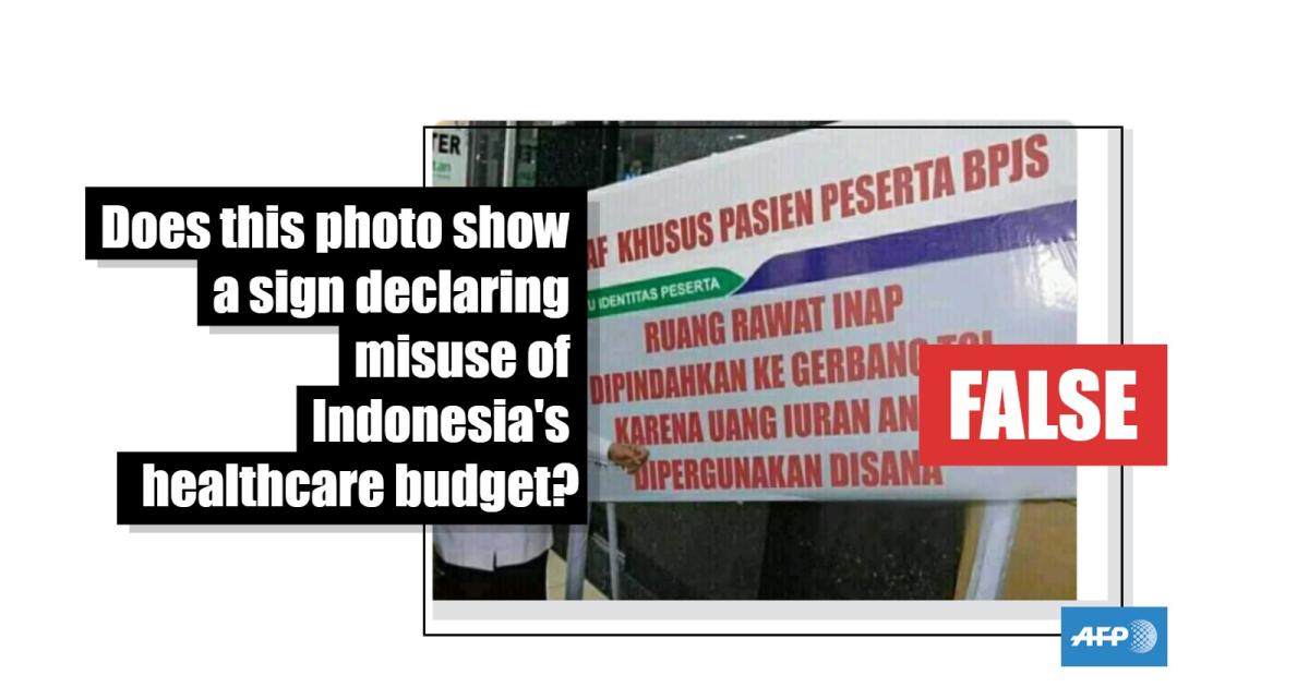 No, this picture did not show a sign saying Indonesia’s healthcare budget has been improperly used to build toll roads