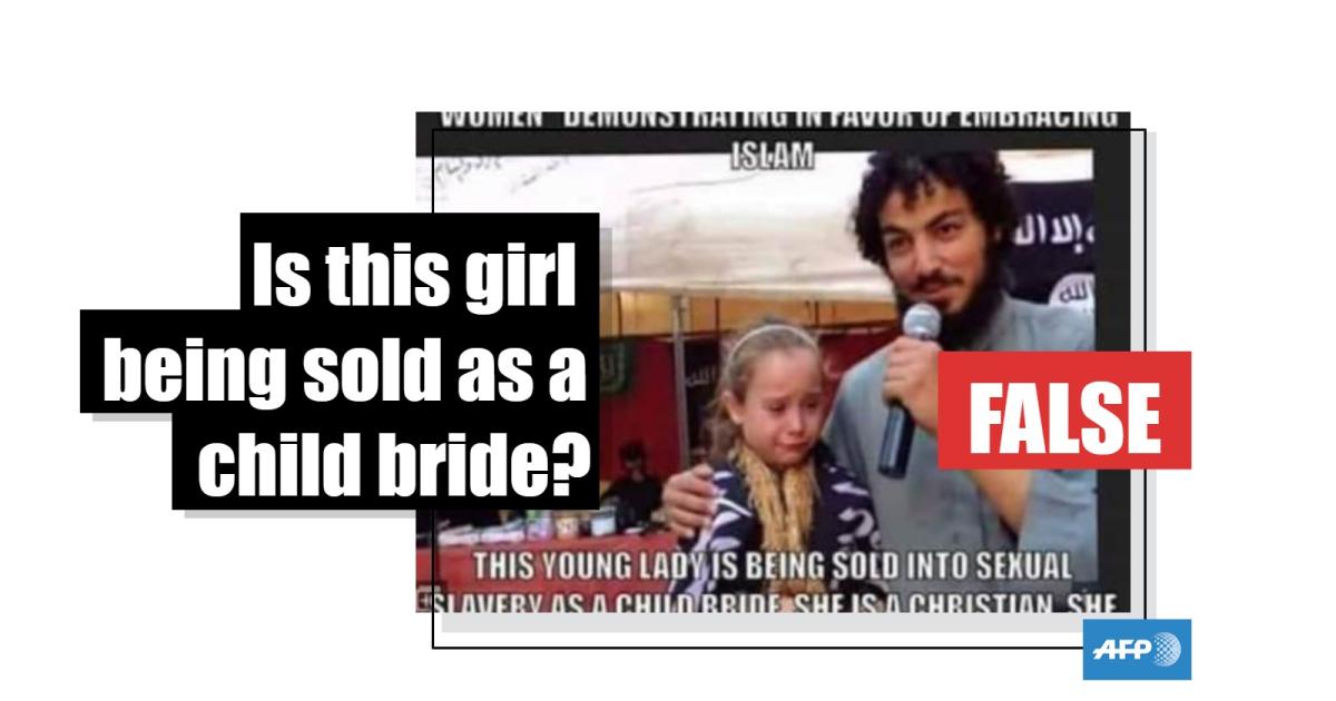 No, this picture does not show a girl being sold into sexual slavery as a child bride