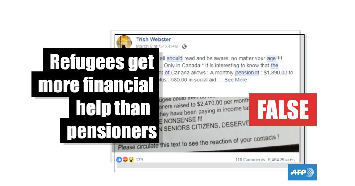 “Perhaps our senior citizens should ask for the Status of Refugees instead of applying for Old Age Pension,” advises an image falsely detailing financial aid available to refugees and retirees in Canada that continues to be shared on social media.