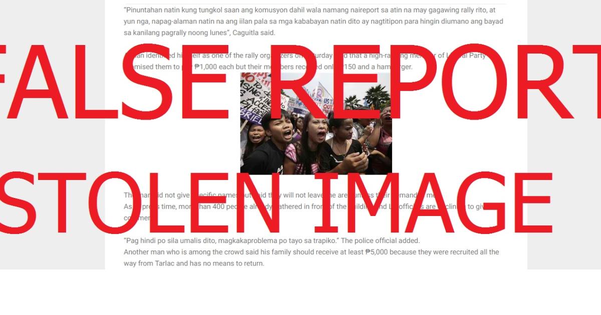 No, a rent-a-crowd did not rally to demand money for protesting against Philippine President Rodrigo Duterte