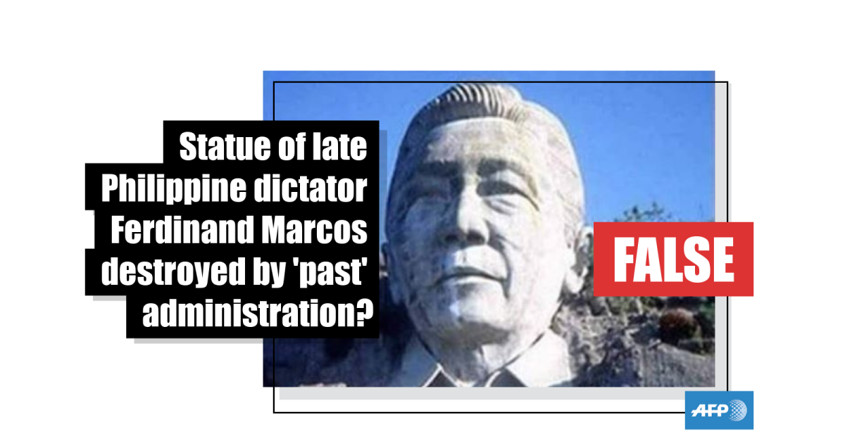 No, this statue of late Philippine dictator Marcos was not destroyed by the ‘past’ president’s administration