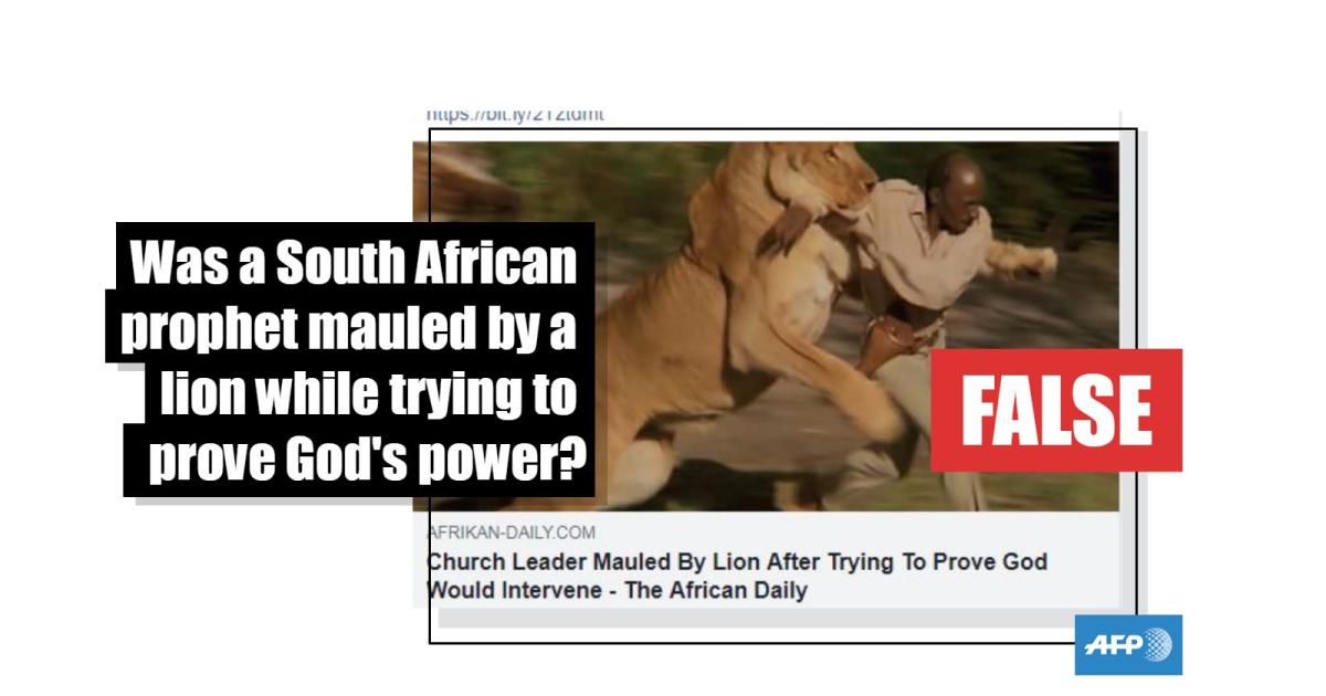 No, there's no evidence a South African prophet was mauled by a lion while trying to prove God's power