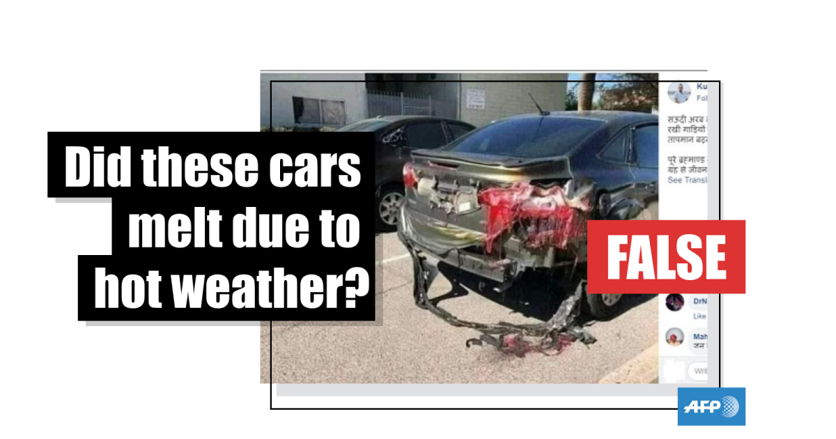 And this Facebook post, published June 24, 2018, and shared more than 950 times since, combines the same photo with the caption: “Hot Temprature in Arizona due to fire in forest is melting cars”.