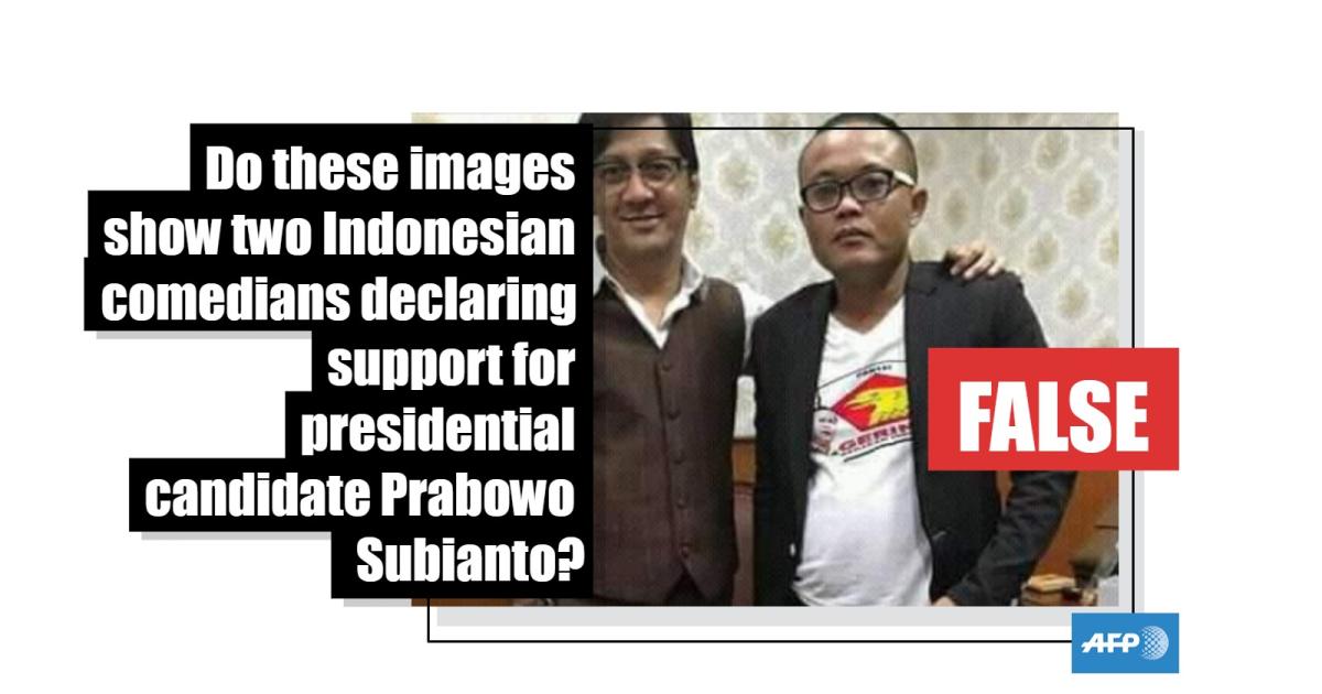 No, these images do not show two famous Indonesian comedians declaring support for presidential candidate Prabowo Subianto