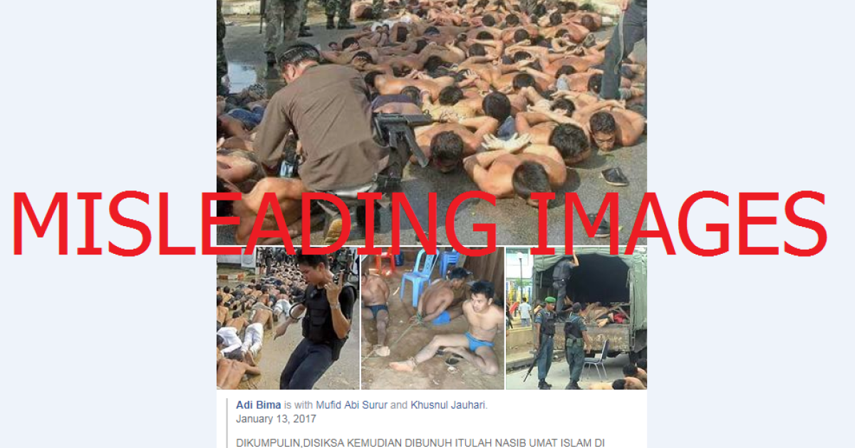 The four photos were first shared to Facebook on January 13, 2017, with a caption saying: “Arrested, tortured and then killed: that is the fate of Muslims in Myanmar or Burma. Muslims are inhumanely slaughtered yet the world still perceives Islam as the religion of terrorists.”