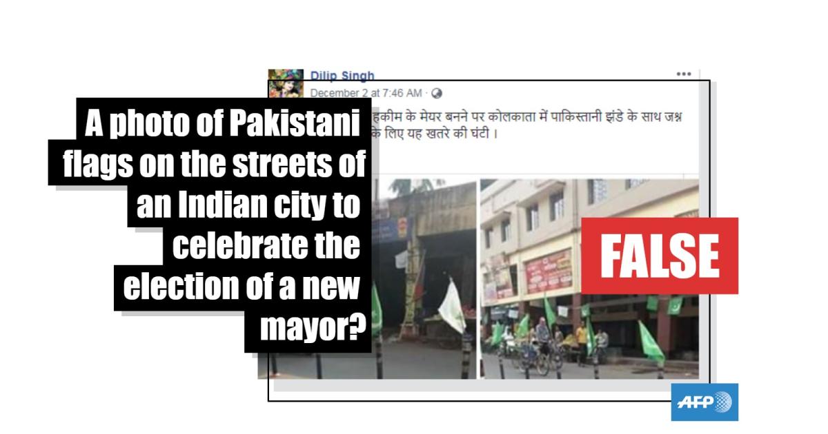 The photos, which have been shared hundreds of times since they were posted to Facebook December 2, 2018, claim to show Pakistan’s national flag being put up on the streets of Kolkata to celebrate the city’s newly elected mayor, Firhad Hakim.