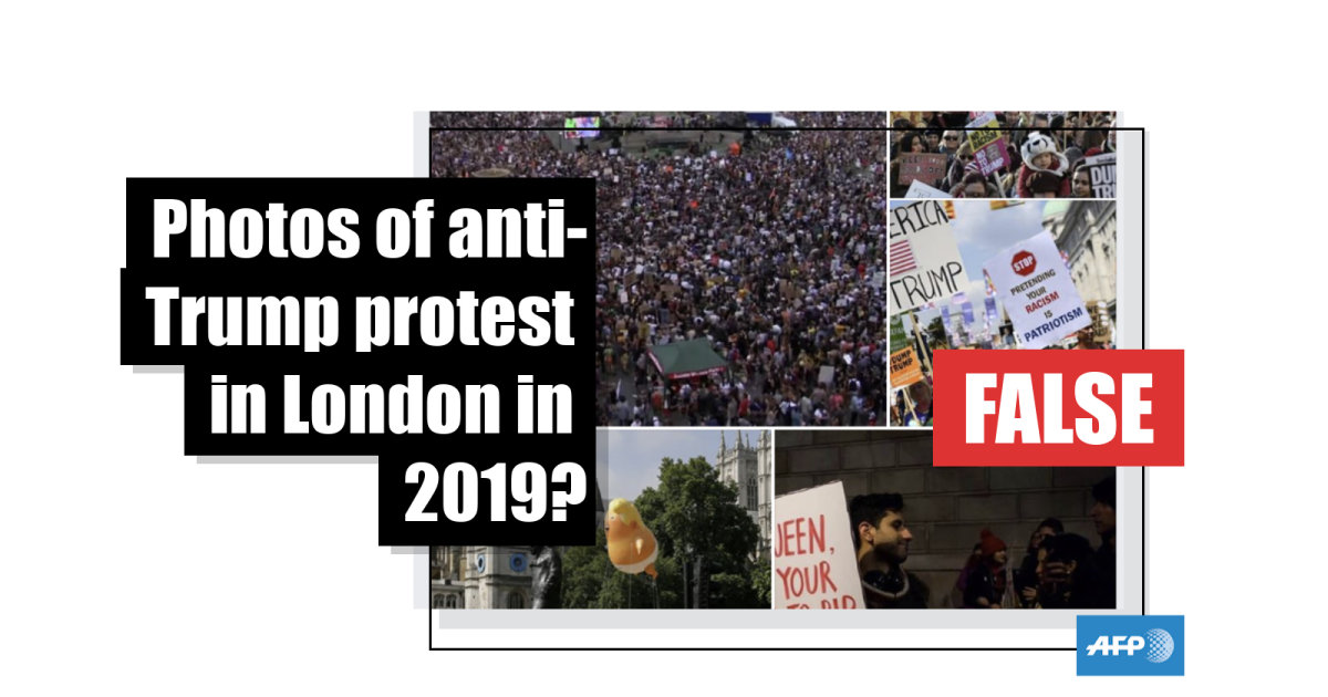 The post was shared the same day that thousands took to the streets in central London over Trump’s state visit to the UK. Here is an AFP report about the protest on June 4, 2019.