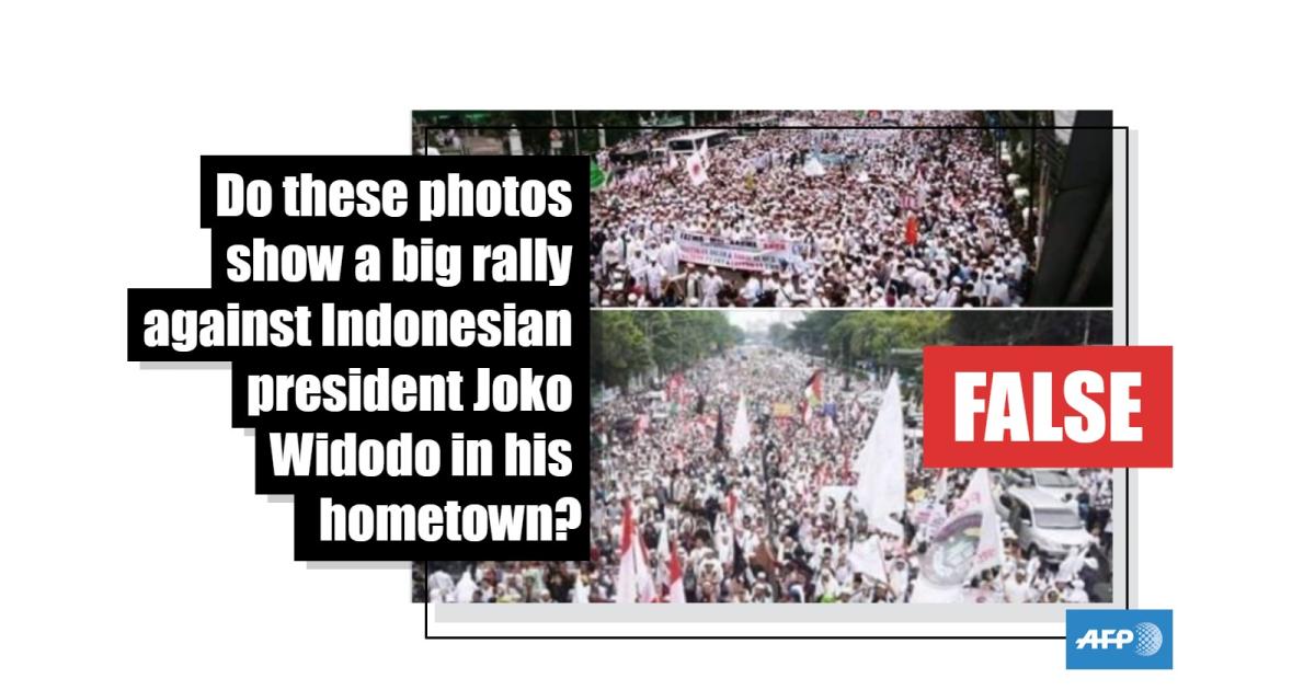 No, these pictures do not show a major rally against Indonesian President Joko Widodo in his hometown