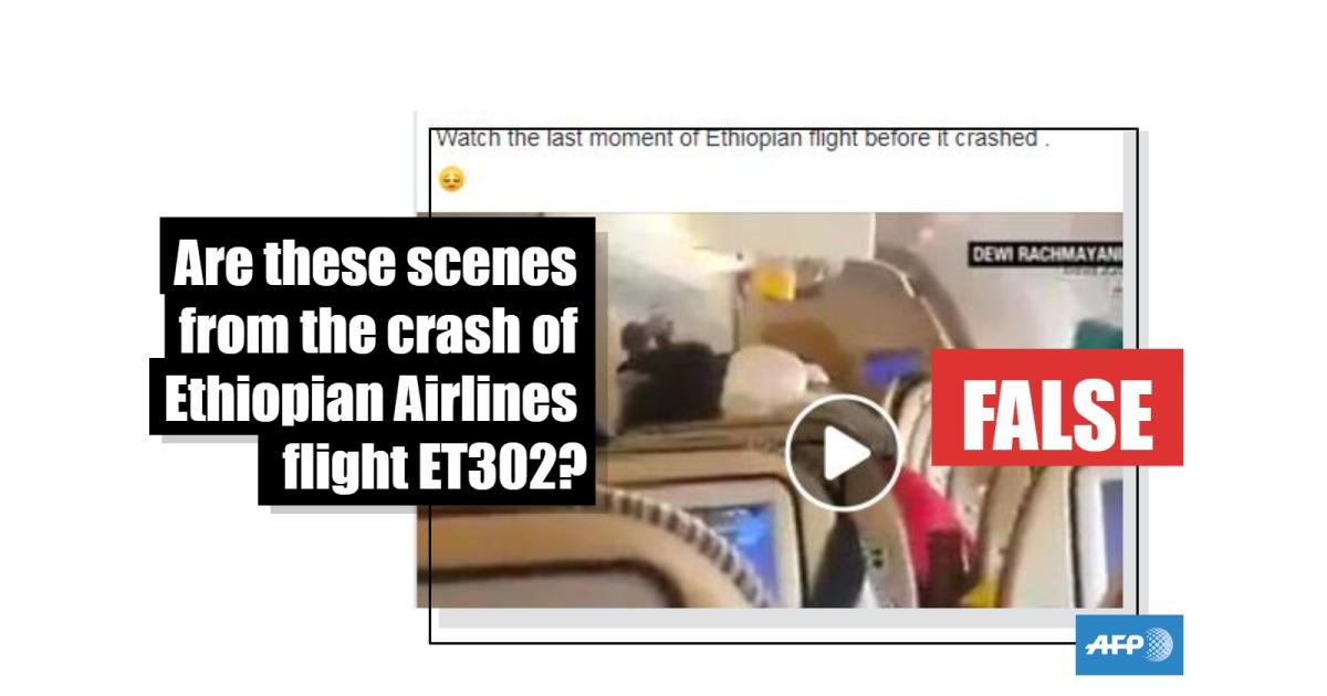 A video shared on Facebook, and seen more than 600,000 times, claimed to show the final moments passengers on board the same flight from Addis Ababa, Ethiopia, to Nairobi Kenya. But that footage was first posted online in May 2016.