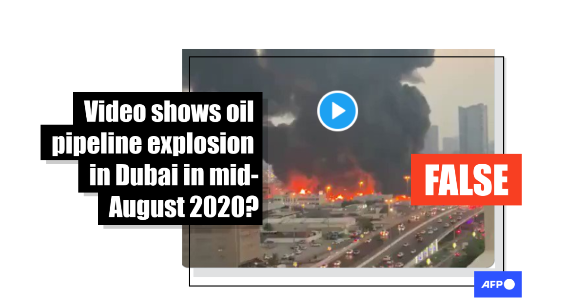 A combined keyword and reverse image search found the same video published in this July 15, 2020 report by UK television channel Sky News about an oil pipeline explosion in the Egyptian capital of Cairo.