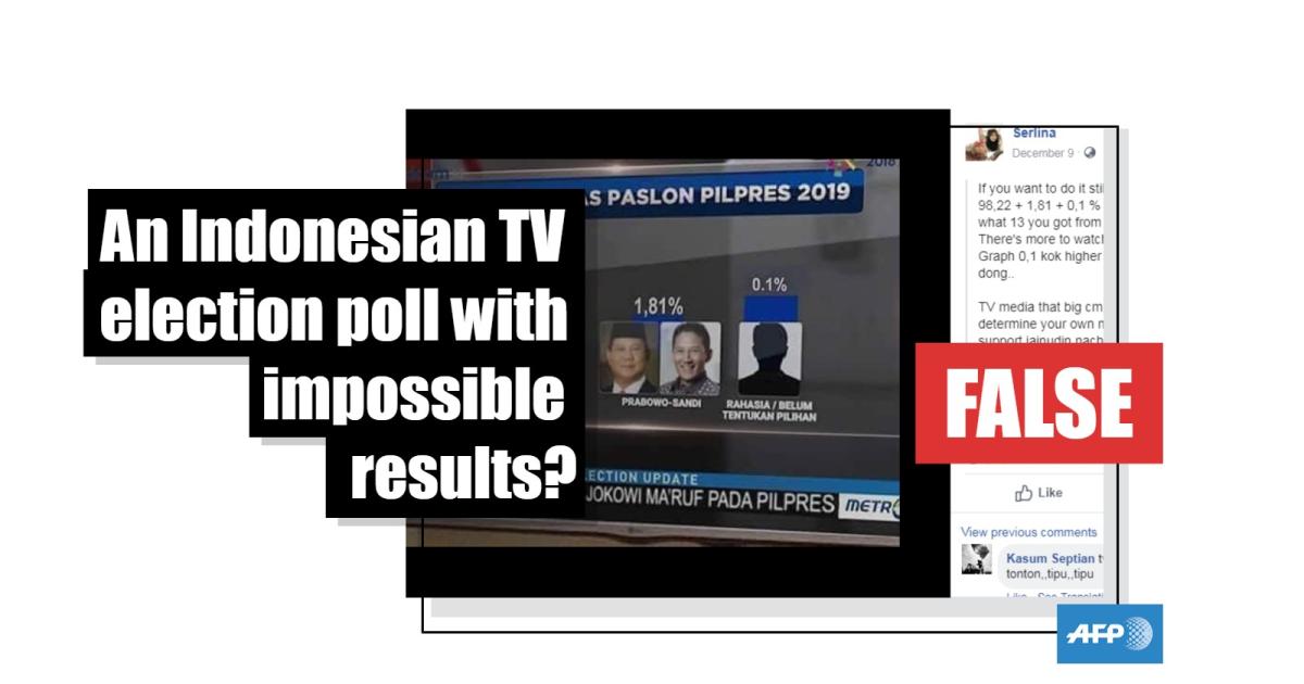 No, this TV news clip did not report an Indonesian presidential survey in which results totalled more than 100 percent
