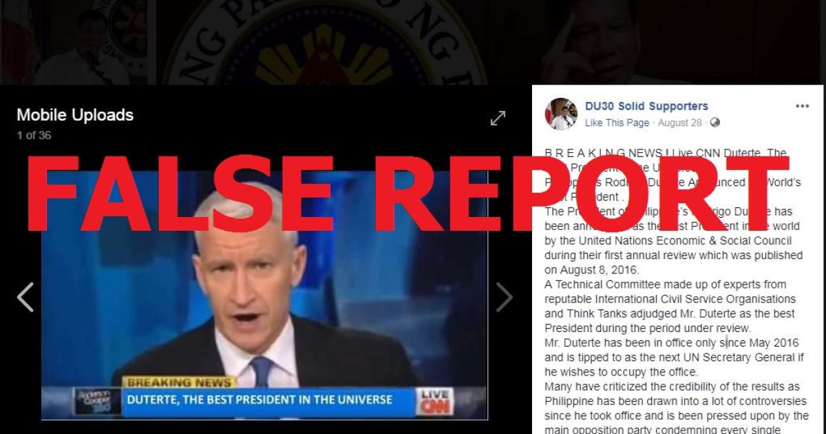 The Facebook post claiming Duterte has been named world’s best president attracted 2,300 reactions and was shared more than 3,200 times in the first two days after being posted on a Facebook page called “DU30 Solid Supporters” on August 28.