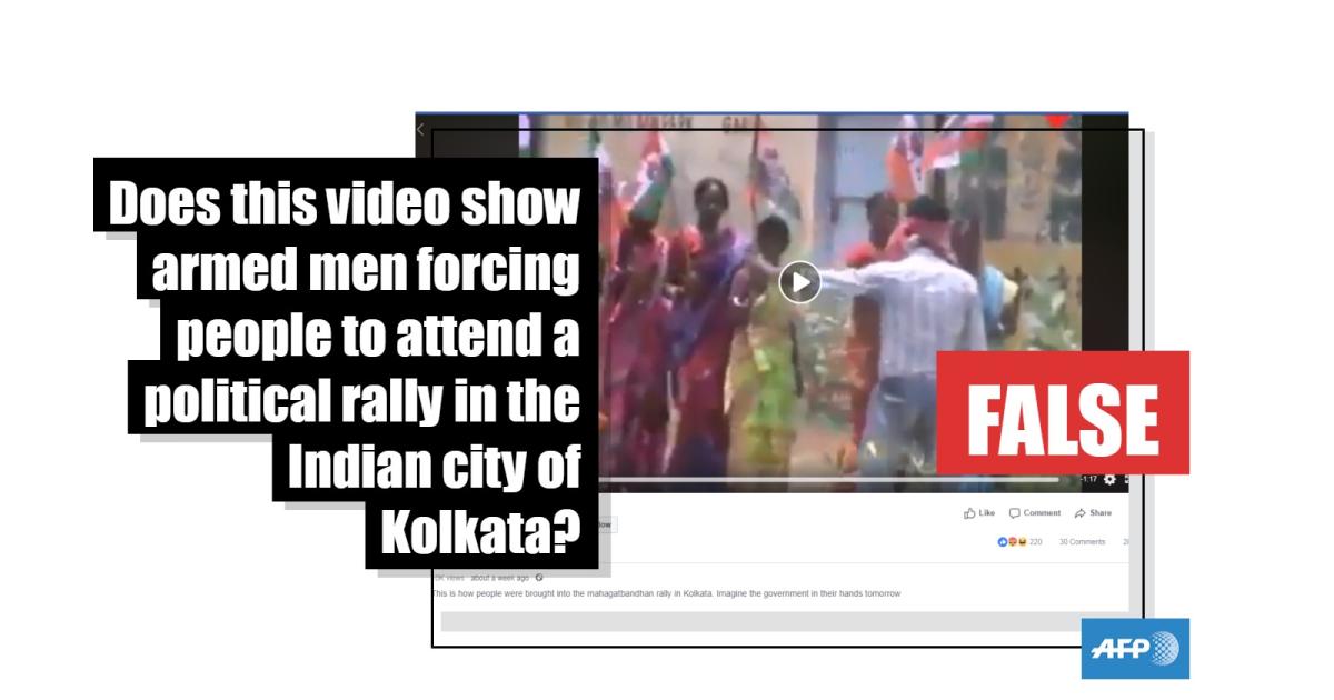 The post on Facebook, including this one on January 23, 2019, which alone was viewed more than 10,000 times, claims the armed men were forcing people to attend a major rally four days earlier that was hosted by the Trinamool Congress (TMC) party, which governs West Bengal.