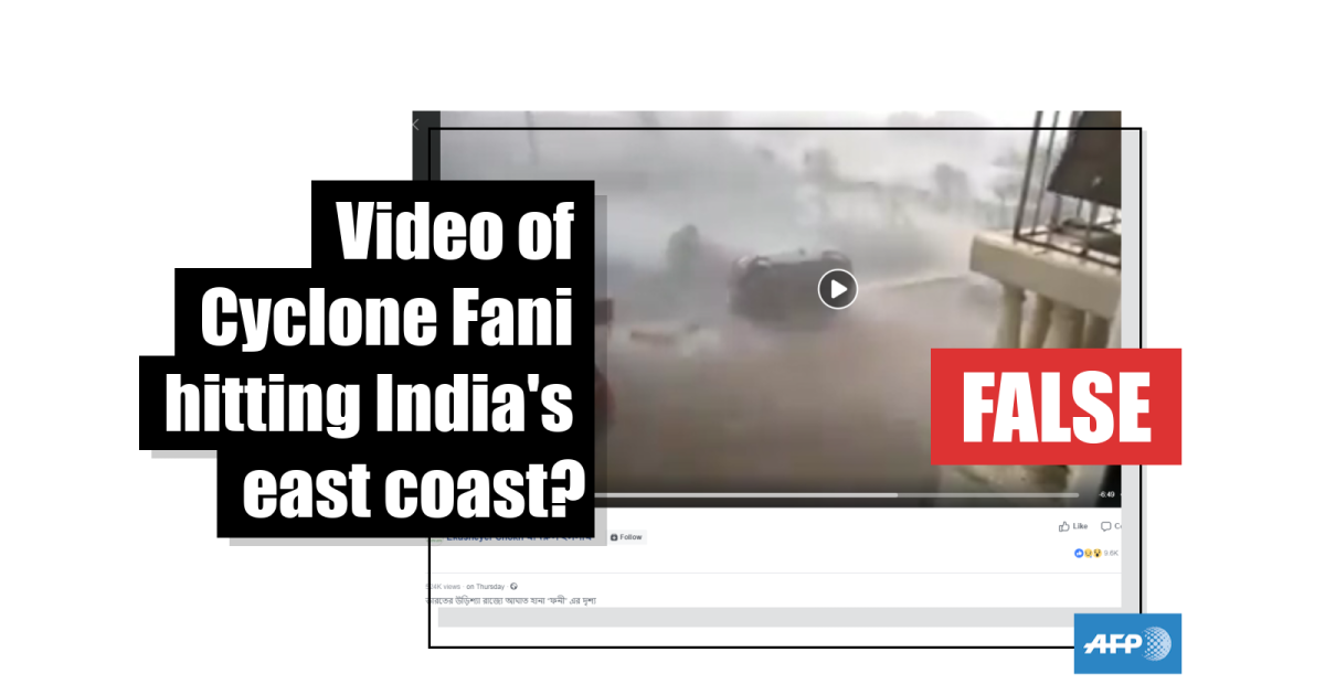 But the misleading footage does not show Cyclone Fani -- it has been edited from three different clips, all of which were originally posted online in 2016.