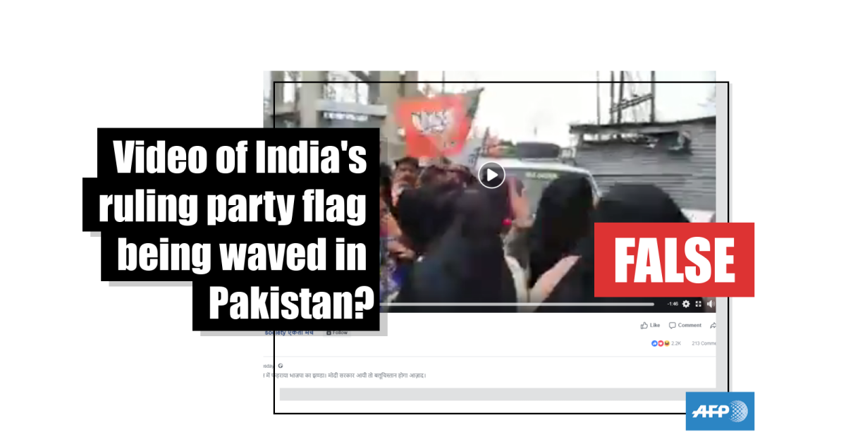 No, this video does not show the flag of India’s ruling Bharatiya Janata Party being waved in a province in Pakistan
