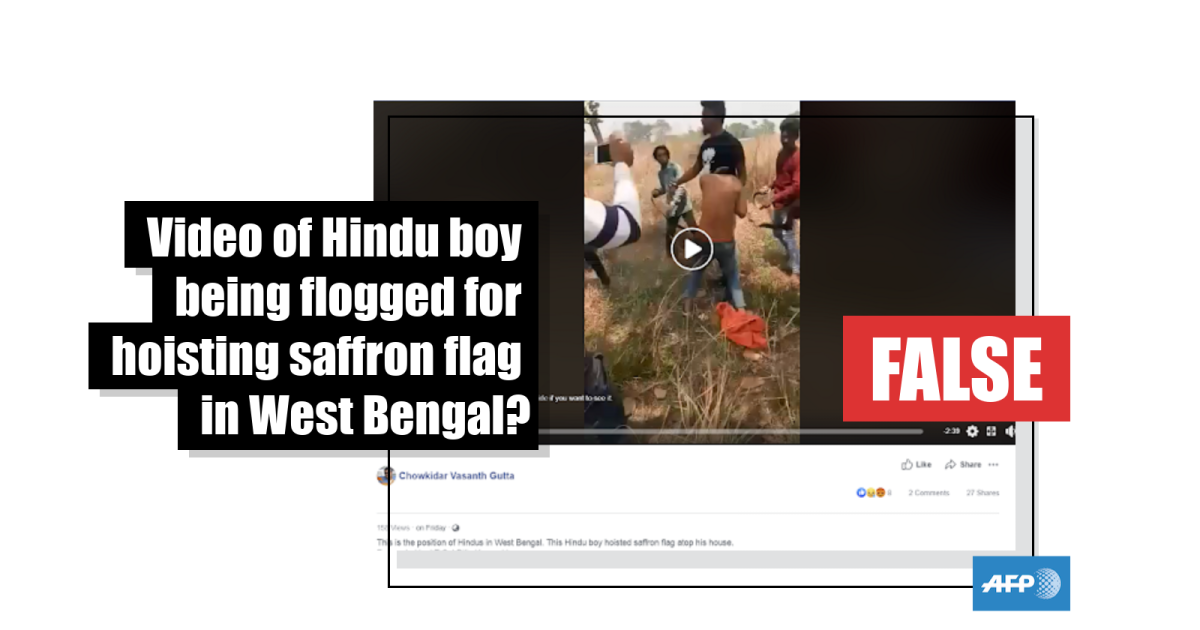 No, this video does not show a Hindu boy being attacked because he flew a saffron flag from his house in West Bengal