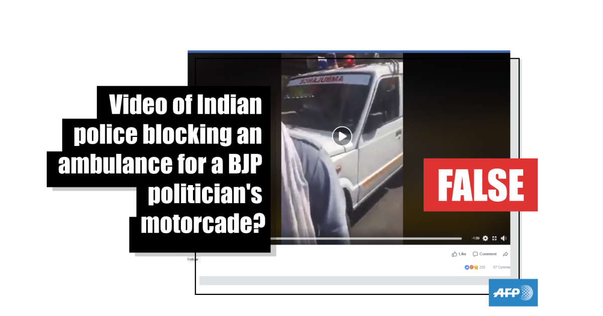 No, this video does not show Indian police blocking an ambulance for the motorcade of a ruling party politician