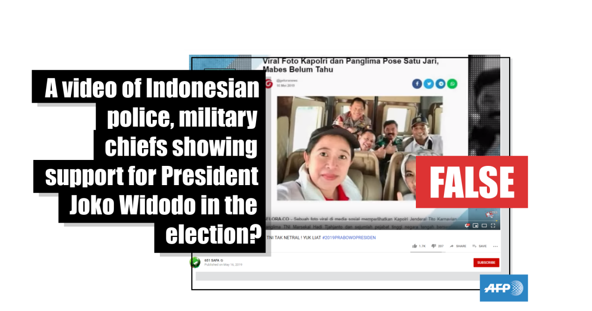 No, this video does not show Indonesian police and military chiefs declaring their support for President Joko Widodo in the election