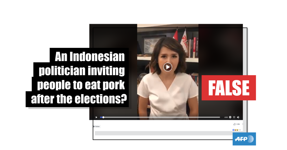 No, this video does not show Indonesian politician Grace Natalie inviting people to eat pork after the 2019 elections