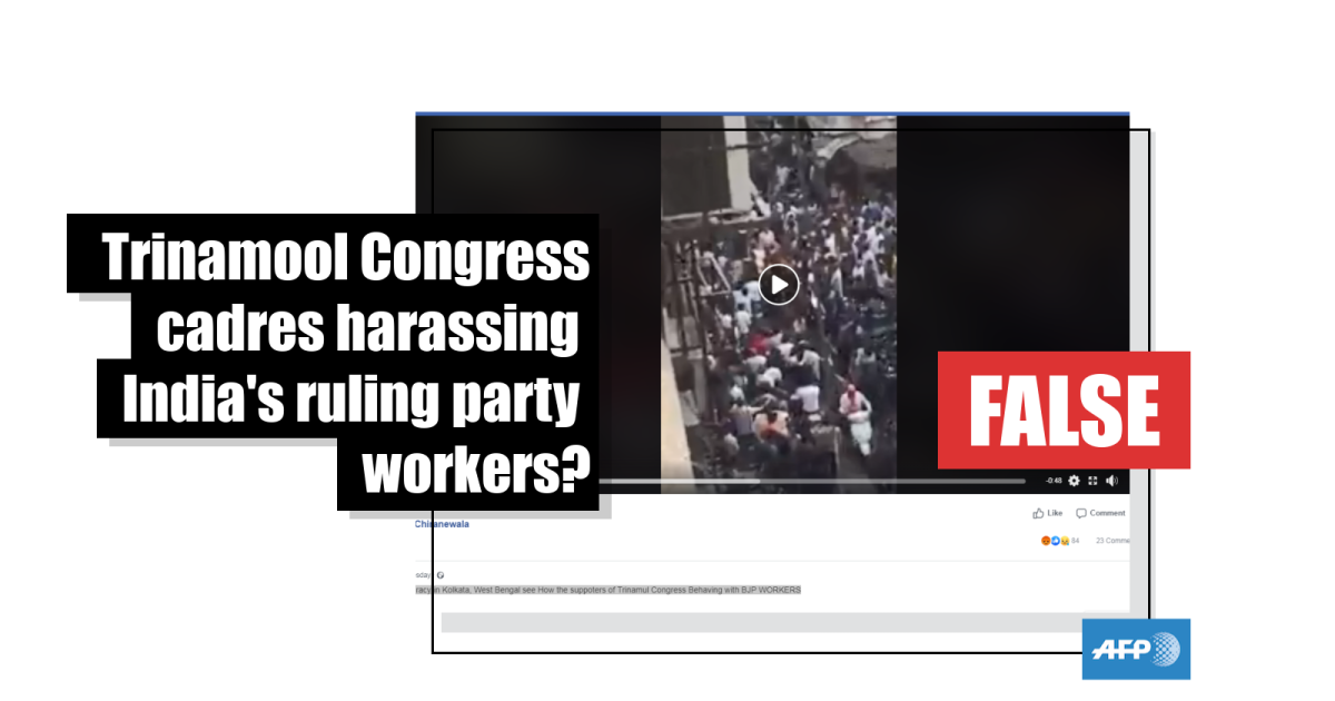 No, this video does not show supporters of India's Trinamool Congress party harassing BJP workers in West Bengal