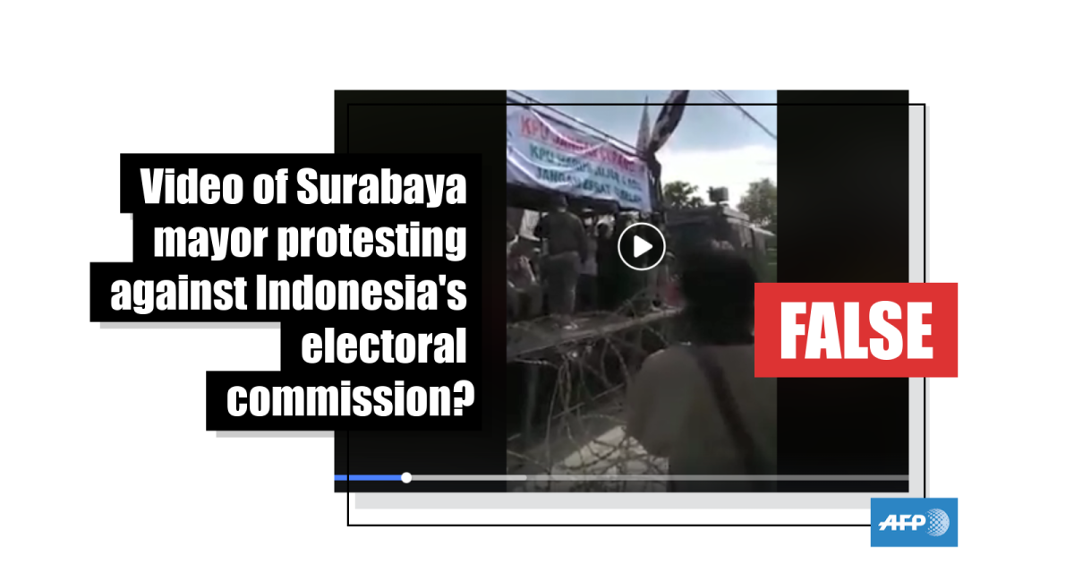 No, this video does not show the Surabaya mayor protesting outside Indonesia’s electoral commission