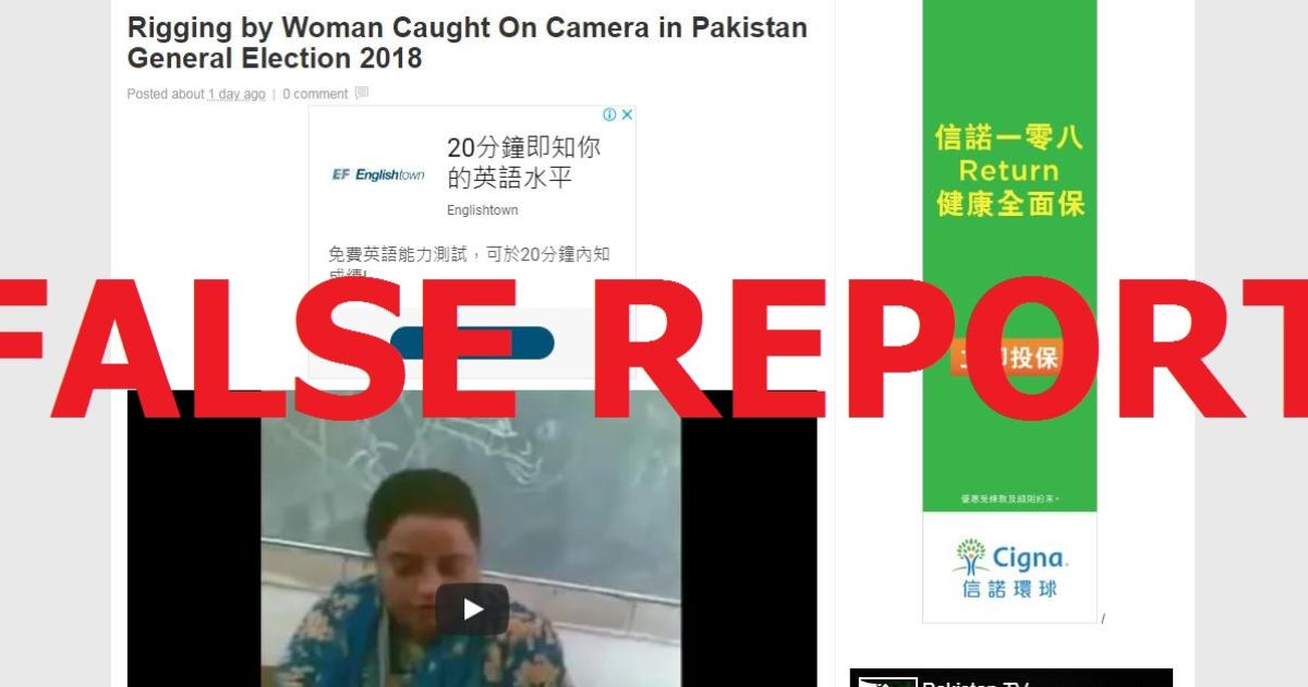 The video also appeared in this online report with a headline that read: "Rigging by Woman Caught On Camera in Pakistan General Election 2018." The video was shared by a Facebook page with more than four million followers.
