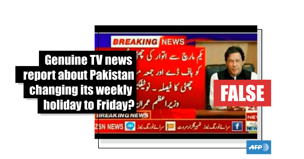 This is not a real television news report -- and Pakistan's government denied it was changing the nation's weekly day off