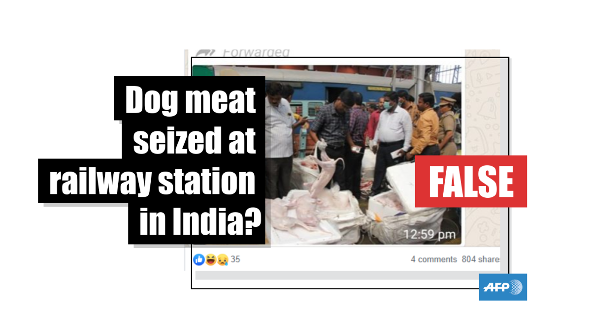 Other similar claims have been shared that specify different locations. Posts were published here and here claiming the dog meat was found in a town in eastern India and here claiming it was found in a town in the southwest state of Goa.