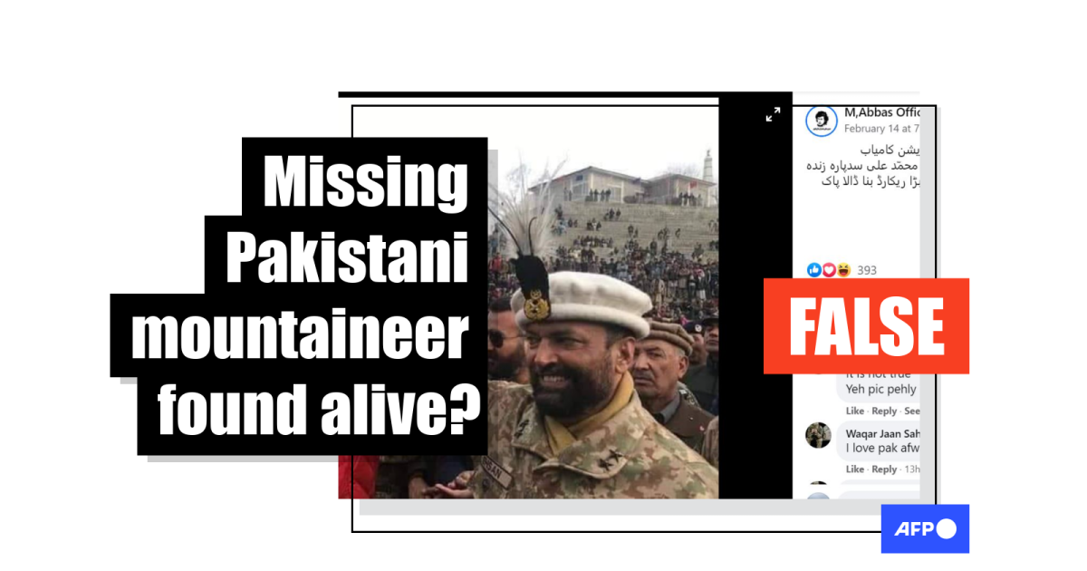 The claim was posted here on Facebook on February 14, 2021 with a photo showing Ali Sadpara with Major General Dr. Ehsan Mehmood Khan of the Pakistani army.