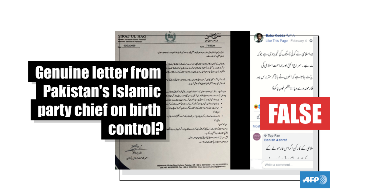 Pakistan’s Islamic party denied its chief wrote this letter urging members to forgo contraceptives to increase the party's voting base
