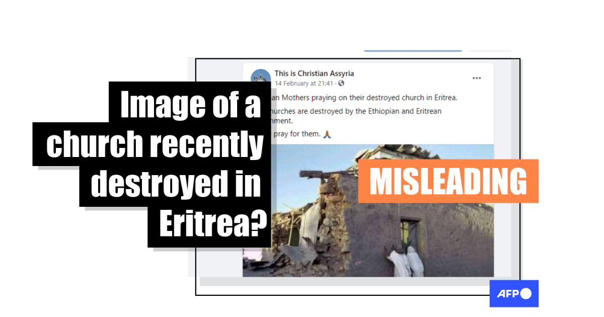 A reverse image search on Google revealed it was posted on social media in 2018, a year before the current conflict began. A search on Bing indicated that the church was located in Adi Keih, a market town in Eritrea just north of Tigray, across the border.