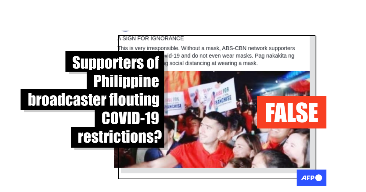 The photo circulated days after ABS-CBN celebrities and employees staged a protest against the refusal by Philippine legislators in early July 2020 to approve the broadcaster’s operating licence application.