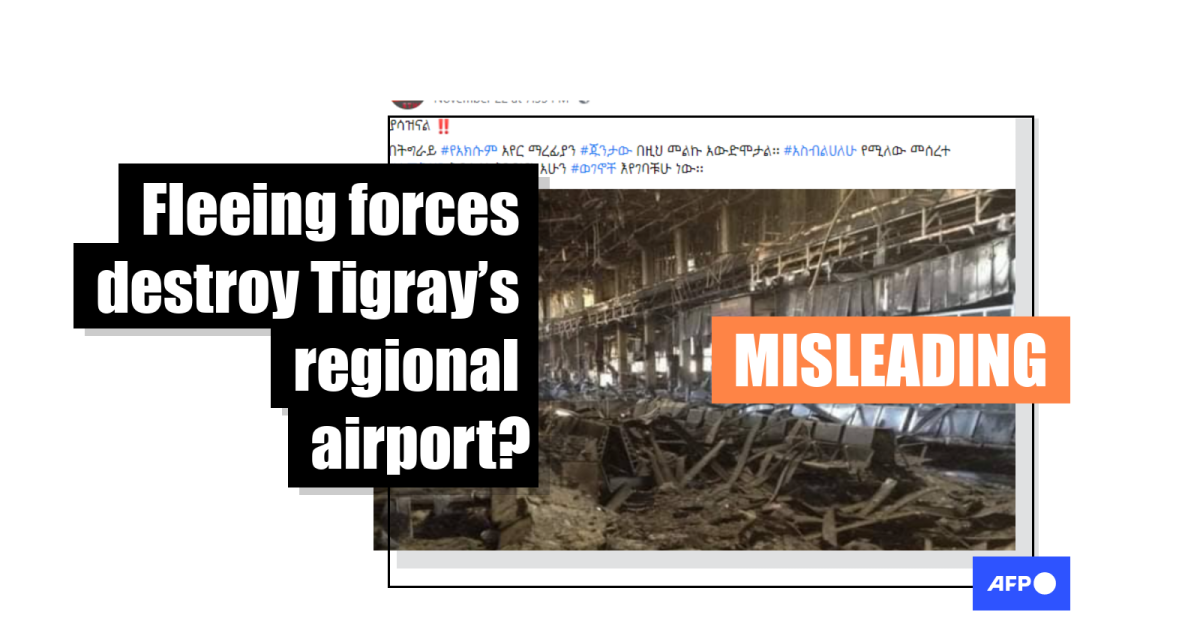 While the images of Aksum’s damaged runway are genuine and a result of the conflict in Tigray, those of a damaged building posted on Facebook show an airport terminal in Tripoli that was destroyed during clashes between rival Libyan militias in 2014.