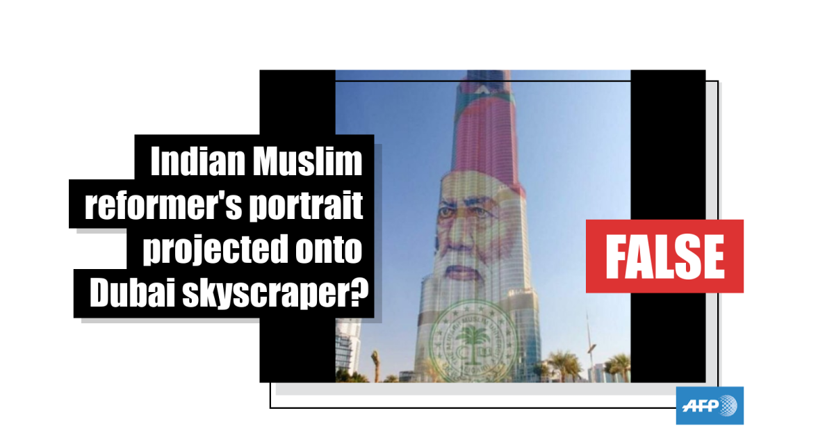 This photo of Dubai’s Burj Khalifa has been doctored to include an image of an Indian Muslim reformer