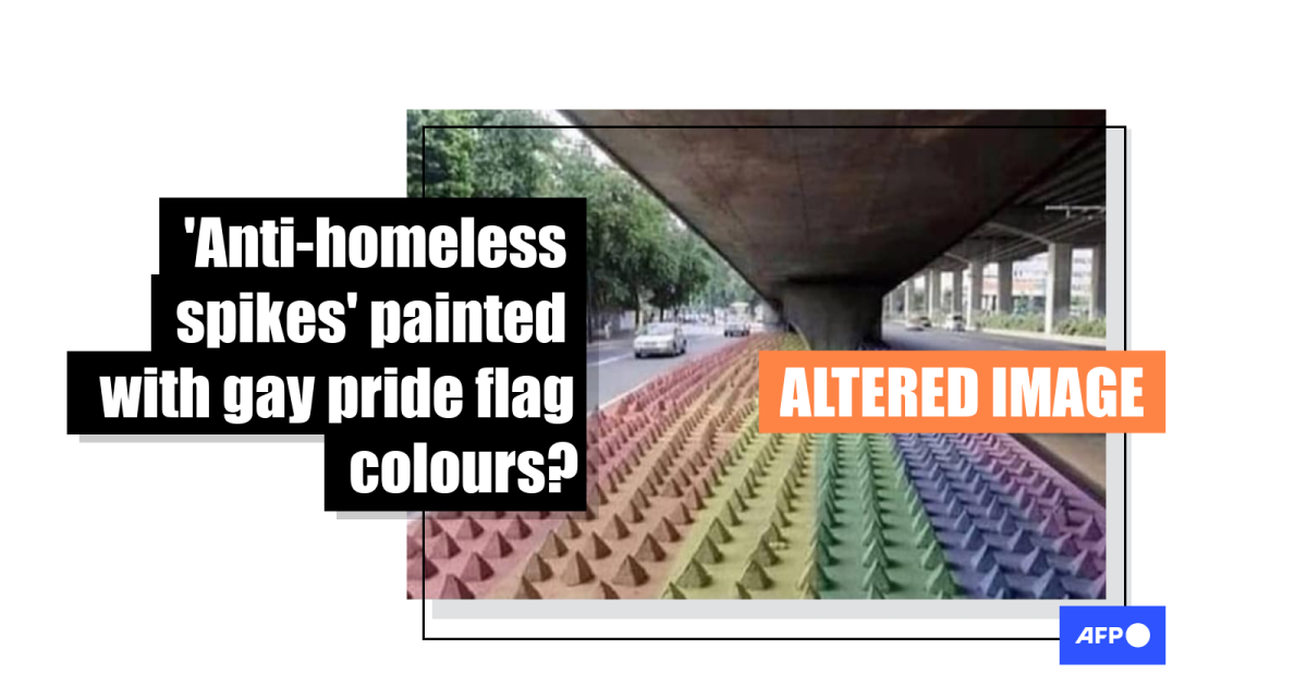 “What if we kissed... at the pride themed anti-homeless spike covered underpass,” the photo’s text overlay states.