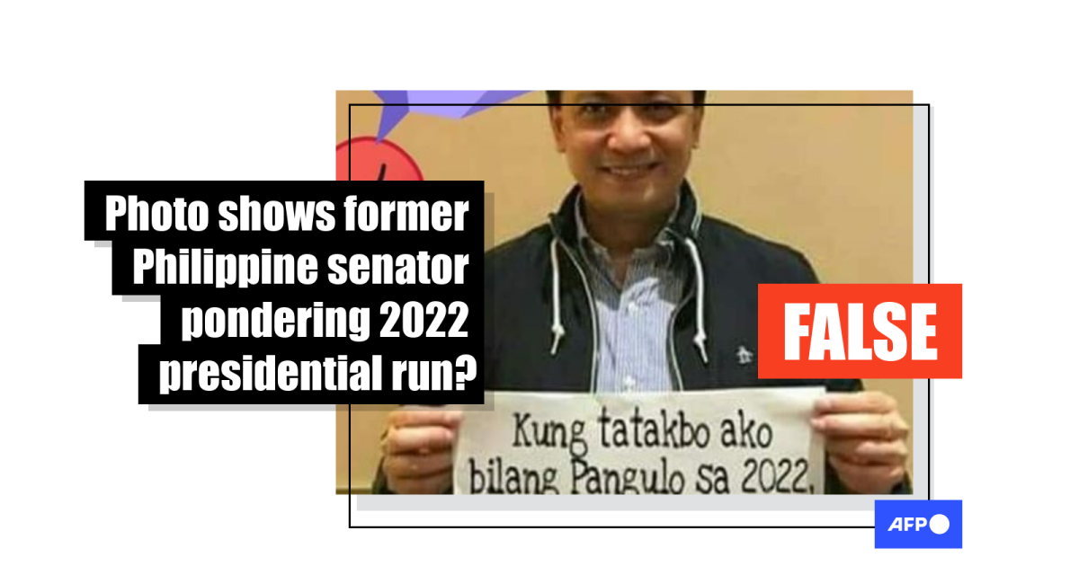 The text sign that former Senator Trillanes appears to be holding reads: "If I ran for President in 2022, can I expect your vote?"