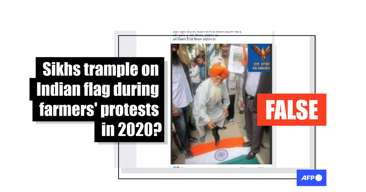 The photo circulated online as farmers in India staged nationwide protests against the country’s new farming laws, as reported here by AFP.