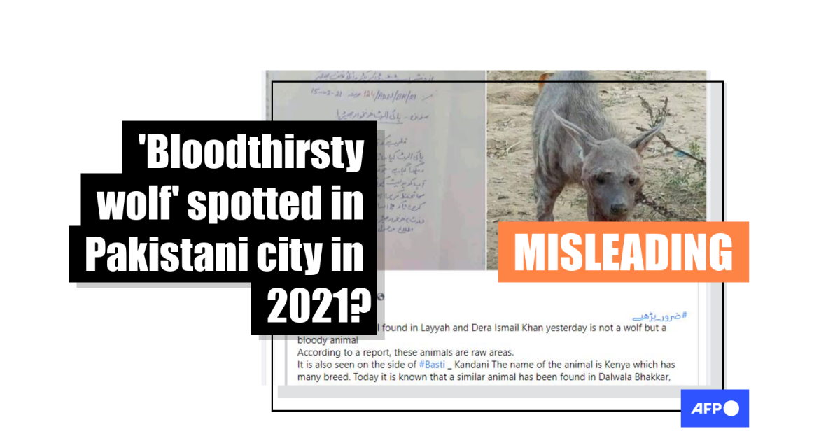Contacted by AFP to analyse the animal in the photo, the World Wide Fund for Nature (WWF) said: “From the picture shared, it does not look like a wolf; rather it looks to be a Striped Hyena (Hyaena hyaena) which is found in Africa, Central Asia and parts of Indian subcontinent”.