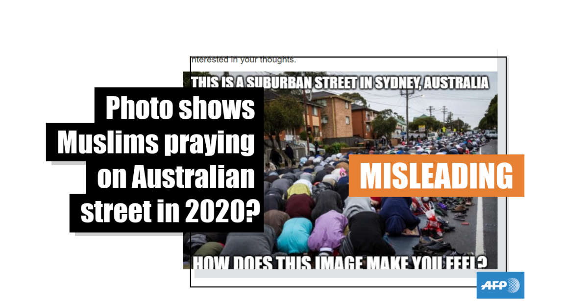 This photo has circulated in reports since 2013 about Muslims praying on a Sydney street