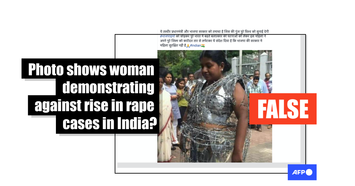 The post’s Hindi-language caption translates to English as: “This photo is a slap in the face of the prime minister and the BJP government that would be heard in the whole world except to BJP supporters. In the wake of rising cases of rape in the country, this woman has tried to give a message that women are not safe under the BJP government by covering her whole body with barbed wire.”