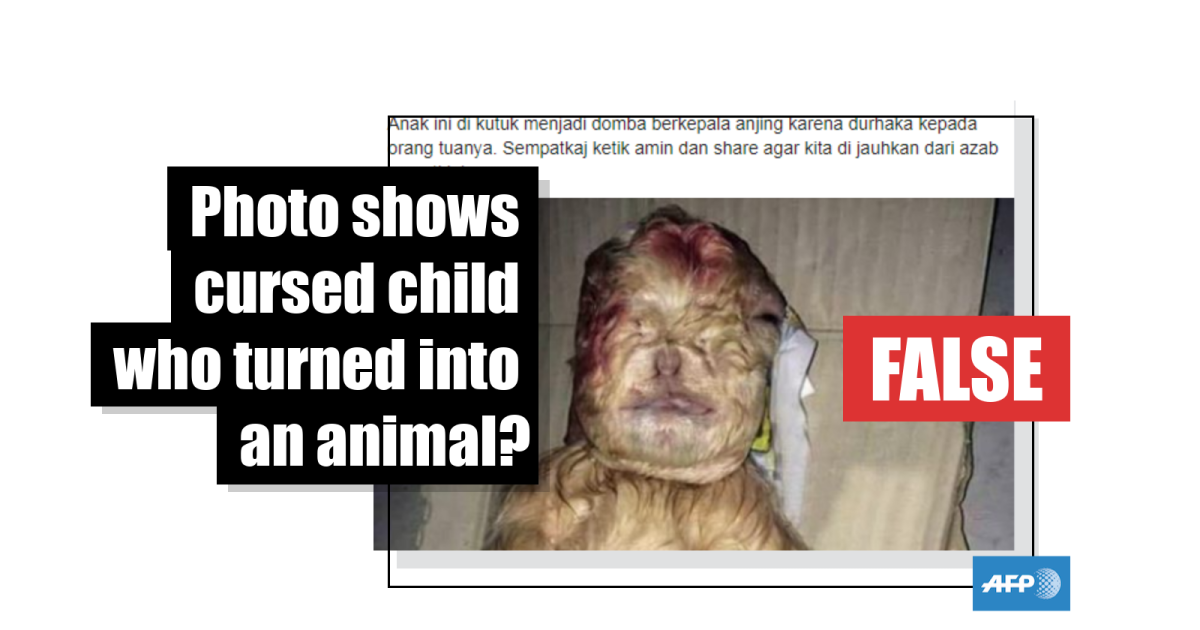 “This child was cursed and turned into a dog-headed sheep for disobeying the parents. Make sure to type amen and share it so we are kept away from this kind of punishment.”