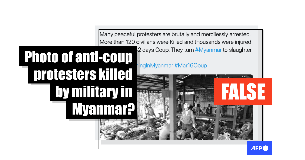 The post circulated as Myanmar security forces continue to violently crack down on anti-coup protests, which erupted after the military seized power from the former civilian government on February 1, 2021, as AFP reported here.